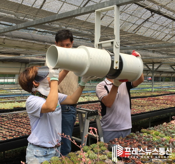 | ▲ 다육식물 시설하우스내 원심가습기 설치(사진=경기도) |