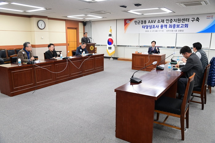 | ▲민군겸용 AAV 소재 인증지원센터 구축 타당성조사 용역 최종보고회(사진=진주시) |
