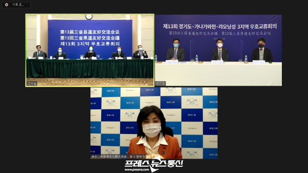 상호 자매결연 관계인 3지역 간 협력 네트워크 강화를 위해 1996년 창설된 ‘경기도.가나가와현.랴오닝성 3지역 우호교류회의’는 한.중.일 지방정부가 주도하는 가장 오랜 역사를 보유한 지역 협력체다. 당초 제13회 회의는 중국 랴오닝성에서 개최될 예정이었으나, 코로나19에 따른 국외 이동 제한으로 3지역 협의를 거쳐 화상회의로 개최됐다.