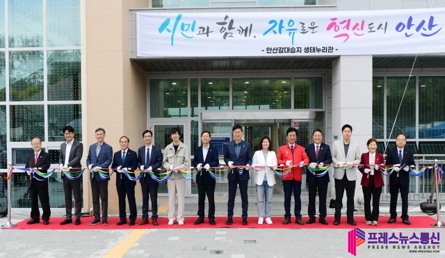 [프레스뉴스] 장현준 기자= 안산시(시장 이민근)는 지난 19일 안산갈대습지 생태누리관 개관식을 열고 본격적인 운영을 시작했다고 21일 밝혔다. 개관식에는 이민근 시장을 비롯해 국회의원, 도·시의원과 산하기관장 등 주요 내빈 100여 명이 참석했다.