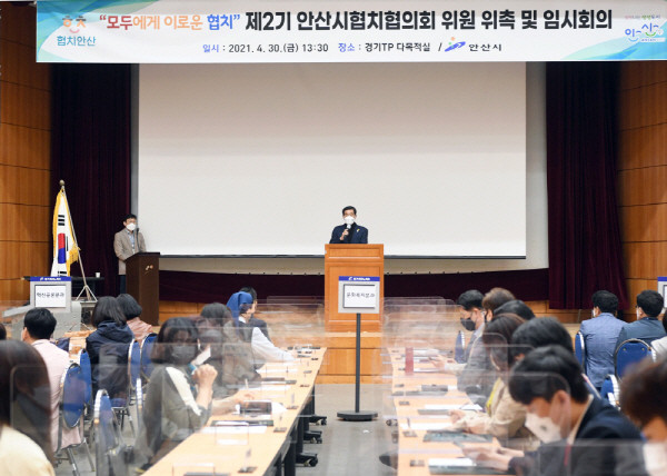 안산시는 지난달 30일 경기도테크노파크에서 윤화섭 안산시장을 비롯한 협치협의회 2기 위원 50명 등이 참석한 가운데 2기 위원 위촉식과 임시회의를 열었다.