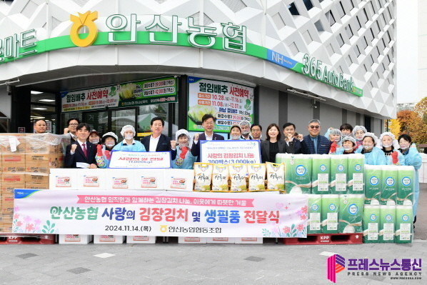 [프레스뉴스] 장현준 기자= 안산시(시장 이민근)는 지난 14일 NH농협 안산시지부와 안산농협으로부터 사랑의 김장 김치 100박스(3,000㎏)와 쌀 250포(1,000kg)를 기탁받았다고 15일 밝혔다.