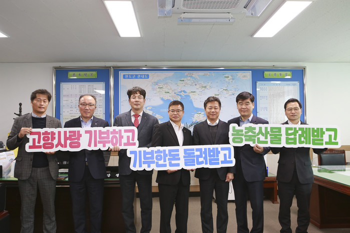 2월 17일에는 재경농협향우회 신영수 상무(금일읍 출신), 양재영 부장(약산면 출신) 등 농협 관계자 9명이 완도군을 직접 방문하여 군 발전을 위해 써 달라며 고향사랑기부금을 기탁했다.