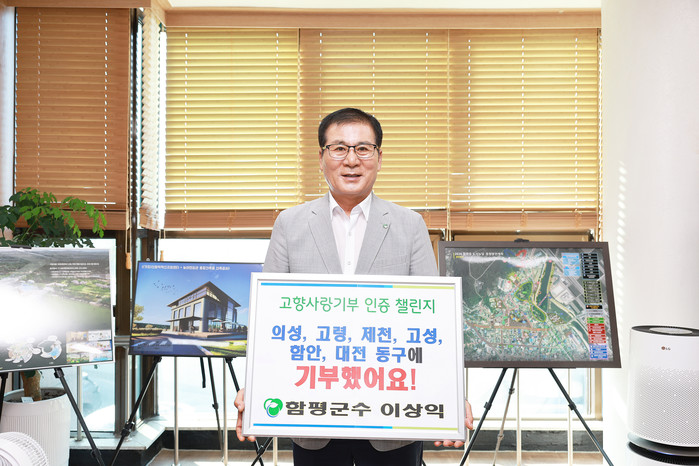 [전남=프레스뉴스] 차윤기 기자= 21일 전남 함평군이 “이상익 함평군수가 고향사랑기부 인증 챌린지에 동참했다”고 밝혔다.