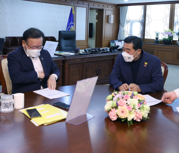 김부겸 국무총리 면담 갖고 안산 연장 필요성 적극 건의…지역 국회의원과 합동 기자회견도