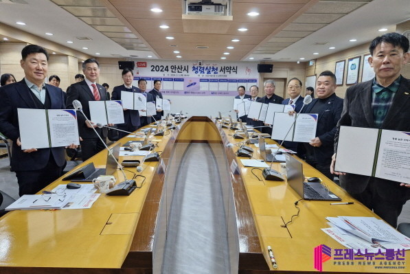 [프레스뉴스] 장현준 기자= 안산시(시장 이민근)는 지난 1일 시청 상황실에서 ‘청렴 모범 도시 안산’ 조성을 위해 시 산하기관장들과 공동으로 청렴실천 서약식을 개최했다고 2일 밝혔다.
