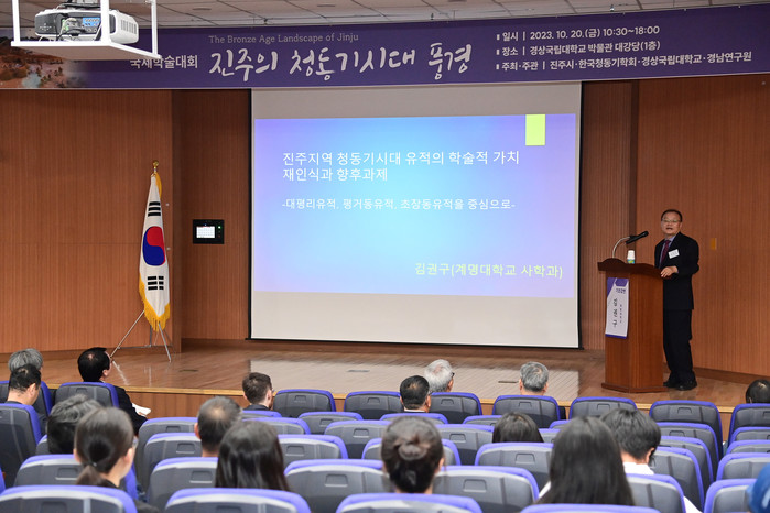 이날 국제학술대회는 ‘진주의 청동기시대 풍경’이라는 주제로 ▲남강유역 청동기시대 취락의 출현과 전개(배덕환 동아세아문화재연구원 원장) ▲진주지역 청동기시대 무덤의 성격과 특징(윤호필 한국청동기학회 학회장·상주박물관 관장) ▲일본 야요이시대와 진주지역 청동기시대 문화 비교연구(히라고리 타츠야 일본 시마네대학 교수) ▲중국 동북지방의 고인돌과 진주 지역의 고인돌 비교 연구(화이빙 중국 랴오닝대학 교수) ▲세계 고고학적 동향에서 본 진주 청동기시대 문화 (잭 데이비 미국 조지워싱턴대학교 연구원) 등의 전문가 발표와 지정·종합 토론으로 진행됐다.
