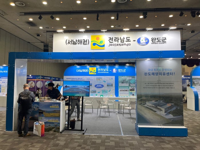 | ▲완도군은 2023 해양바이오 박람회에 참가해 해조류 특화 해양바이오산업에 대해 홍보했다.(사진제공=완도군) |