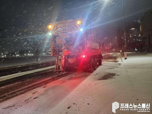 먼저 484톤의 제설재와 8대의 염수분사장치, 덤프트럭, 화물트럭, 굴삭기 등 57대의 장비를 동원해 주요도로와 이면도로, 횡단보도의 제설작업을 실시했다.
