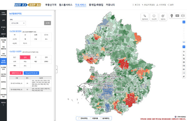 | ▲ 경기부동산포털 농산물 생산지도(사진=경기도) |