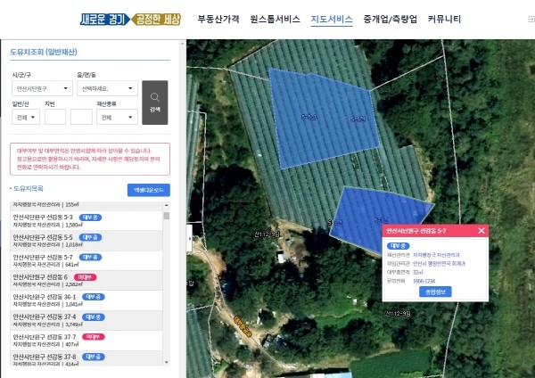 [프레스뉴스] 강보선 기자= 경기도 부동산정보사이트 ‘경기부동산포털’이 9일부터 신규 서비스로 ‘도유지 정보지도’와 ‘농산물 생산지도’를 제공한다.