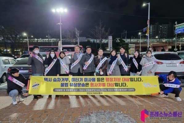 [프레스뉴스] 장현준 기자= 안산시(시장 이민근)는 지난 21일 단원구 중앙동 및 호수동 일대에서 승차거부 등 택시 불법행위 및 불법 유상 운송행위 근절을 위한 캠페인을 전개했다고 24일 밝혔다.