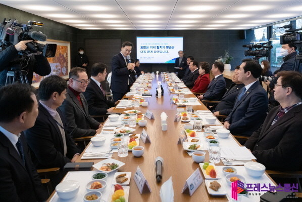 김동연 지사는 3일 도담소에서 경기도의회 의장단 및 상임위원장단과 오찬 간담회를 갖고 “지난해 (도의회와) 여러 가지 난관을 뚫고 협치를 했다. 중앙정치 또는 다른 광역시도에서 하지 못한 와중에 도의회 여야와 집행부가 많은 토론과 이견을 극복하고 예산안을 통과시켰고 조직개편안도 잘 승인됐다”면서 “새해에도 경기도민 삶의 질 향상, 도민의 안전과 생명 그리고 경기도 경제의 역동성을 위해 함께 손잡았으면 좋겠다”고 말했다.