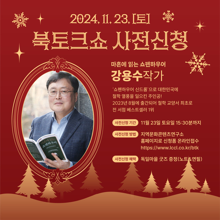 오후 4시부터 <마흔에 읽는 쇼펜하우어>의 저자, 강용수 작가가 출연하는 북토크가 진행된다.