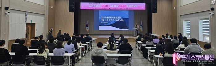 이날 교육은 재난 경험자의 심리적 초기 고통을 감소시키고 회복을 돕는 심리적 응급처치(PFA) 교육과 심폐소생술(CPR) 교육을 통합해 진행됐다.