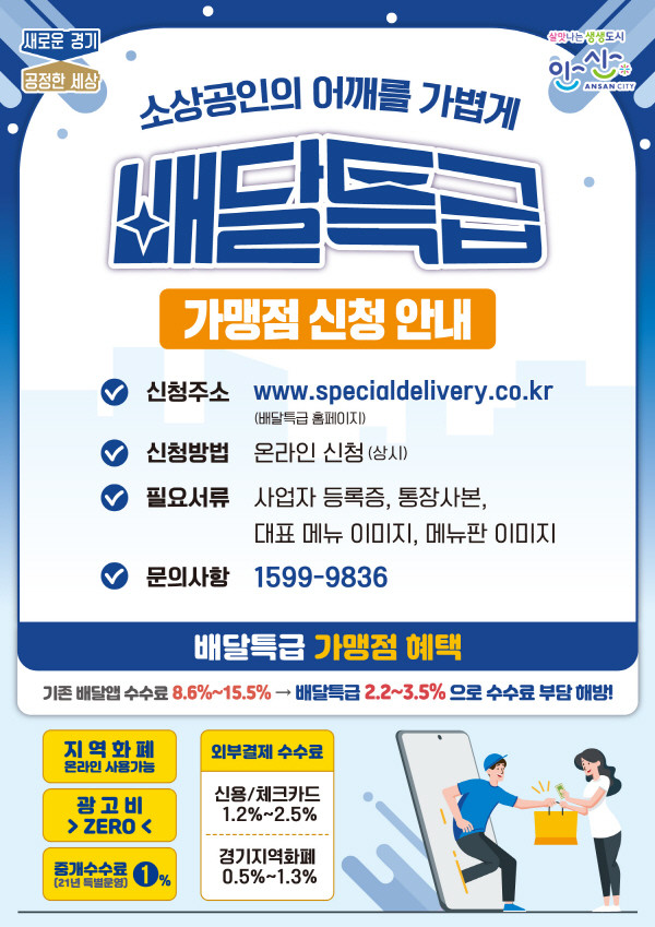 [프레스뉴스] 강보선 기자= 안산시(시장 윤화섭)는 경기도 공공배달앱 ‘배달특급’ 정식오픈을 앞두고 가맹점 사전 신청을 받는다고 6일 밝혔다.