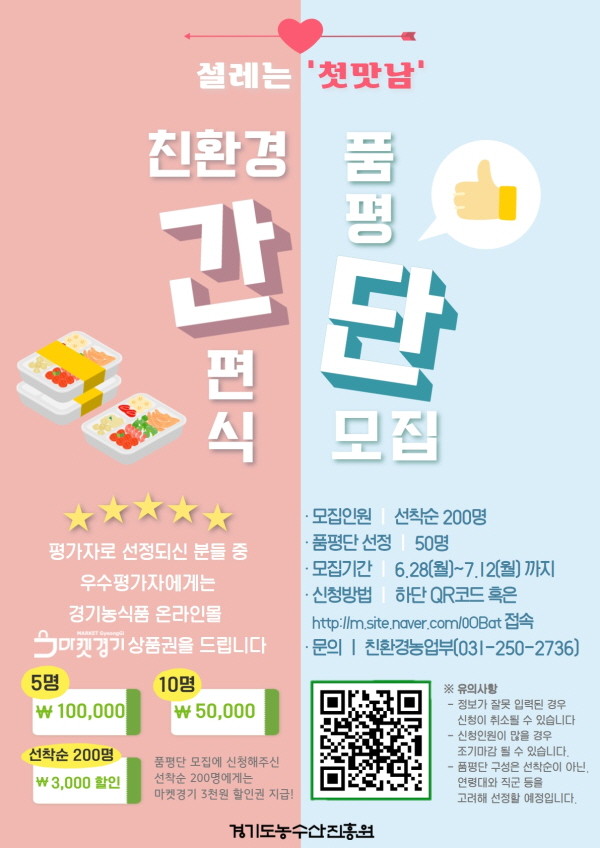 | ▲ 친환경 간편식 품평단 모집 안내 포스터(사진=경기도) |