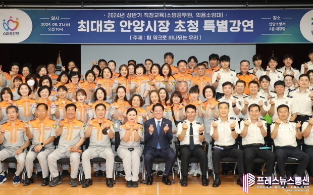 [프레스뉴스] 장현준 기자= 최대호 안양시장이 안양소방서 소방관을 대상으로 ‘팀워크로 하나되는 우리’라는 주제로 특별강연을 진행했다.