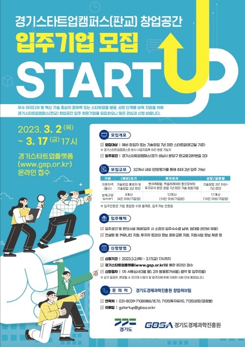 | ▲ 판교 스타트업캠퍼스 입주기업 모집 포스터(사진=경기도) |