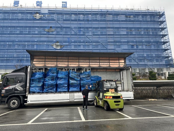 | ▲재활용 책걸상 이송/광주교육청 제공 |