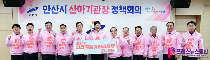 [프레스뉴스] 장현준 기자= 안산시(시장 이민근)는 29일 산하기관 정책회의에서 각 기관장들과 20돌을 맞은 안산국제거리극축제 홍보에 적극적으로 동참할 것을 다짐하는 시간을 가졌다.