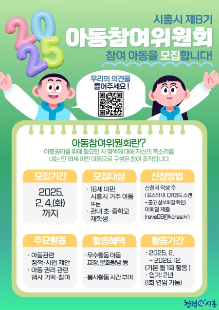 | ▲시흥시 제8기 2025 아동참여위원회 모집 포스터(사진=시흥시) |
