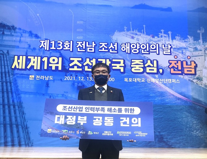 [전남=프레스뉴스] 강래성 기자= 전라남도의회 조옥현 의원(더불어민주당, 목포2)은 지난 13일 목포대 신해양산단캠퍼스 대강당에서 열린 제13회 전남 조선·해양인의 날 행사에 참석해 “전남 서남권 조선해양산업이 활기를 띄는 가운데 인력부족이 발목을 잡는 형국이어서 다각적인 해결방안이 필요하다”고 강조했다.