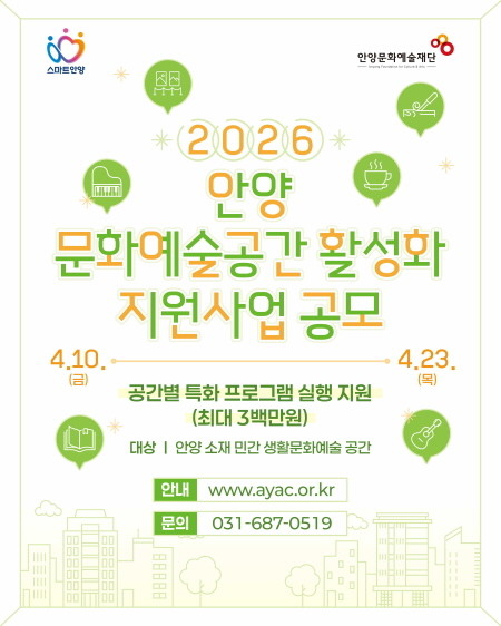 공모 관련 세부 내용은 안양문화예술재단 누리집(www.ayac.or)에서 확인할 수 있다. 문의)031-687-0519