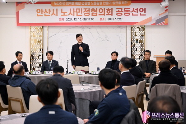 [프레스뉴스] 장현준 기자= 안산시(시장 이민근) 노사민정협의회는 지난 10일 마이어스 안산에서 2024년 노사민정협의회를 개최하고 ‘노사상생 협력 공동선언문’을 발표하는 자리를 가졌다고 11일 밝혔다.