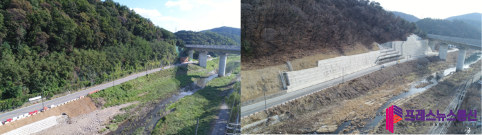 | ▲ 안산시, 호우피해 지역 ‘용담로 급경사지’ 복구 공사 마무리(공사 전,후)사진=안산시 |