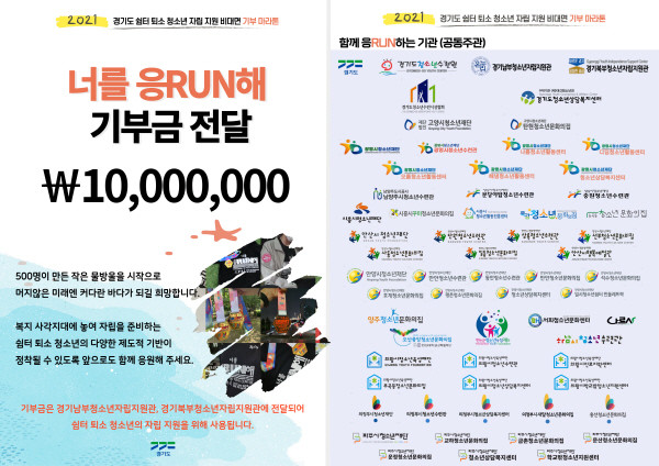| ▲ 경기도청소년수련원, 너를 응RUN해 기부금 전달 포스터(사진제공=경기도) |
