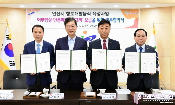 [프레스뉴스] 장현준 기자= 안산시(시장 이민근)는 지난 27일 안산지역 향토음식을 홍보하고 대표 먹거리로 육성하기 위해 향토개발음식 바고찌(바지락고추장찌개) 보급 업무협약을 체결했다고 28일 밝혔다.