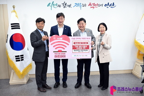 [프레스뉴스] 장현준 기자= 안산시(시장 이민근)는 지난 25일 안산지역 조찬기도회(운영위원장 이강옥)로부터 영남권 산불 재해 복구를 위한 성금 200만 원을 기탁받았다고 28일 밝혔다.