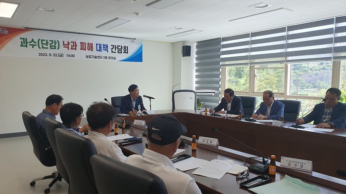 | ▲과수(단감) 낙과 피해 대책 간담회 사진=진주시 제공 |