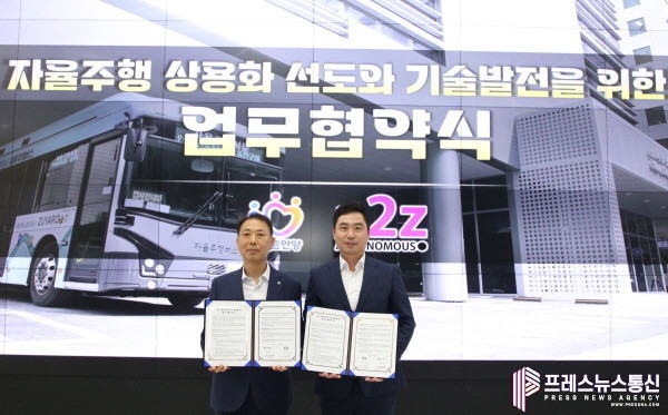 [프레스뉴스] 장현준 기자= 디지털특별자치시를 선포한 안양시가 지난 27일 스마트도시통합센터에서 ㈜오토노머스에이투지(a2z)와 ‘자율주행 상용화 선도와 연구개발·기술실증을 위한 업무협약’을 체결했다고 28일 밝혔다.