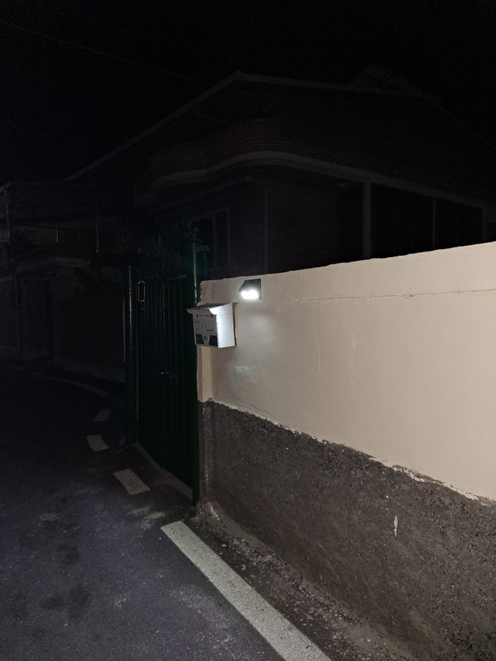 이번에 설치한 태양광 센서 등은 낮에는 태양광으로 자동 충전되고, 어두운 밤에 사람이 지나가면 센서가 인식해 자동으로 불이 켜지는 동작감지용 센서 등이다.