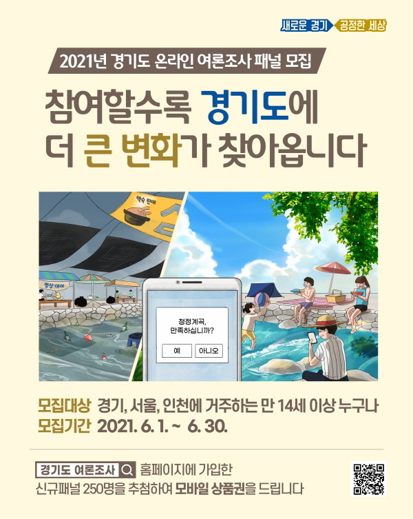 [프레스뉴스] 강보선 기자= 경기도가 6월 30일까지 ‘경기도 온라인 여론조사 신규 패널’을 모집한다.