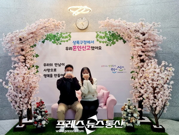 [프레스뉴스] 장현준 기자=안산시 상록구(구청장 박양복)는 혼인신고를 하는 소중한 날을 행복한 추억으로 간직할 수 있도록 ‘혼인신고 기념 포토존’을 새단장해 운영한다고 26일 밝혔다.