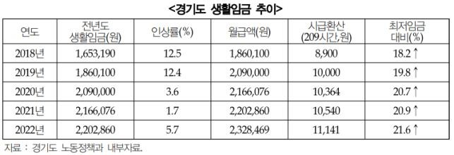 | ▲ 경기도 생활임금 추이 자료(사진=경기연구원) |