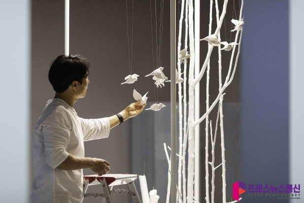 | ▲ 2019 경기도자미술관 국제 창작 교류_영국도자비엔날레 참여_맹욱재 작가 작품설치 모습(사진=한국도자재단) |