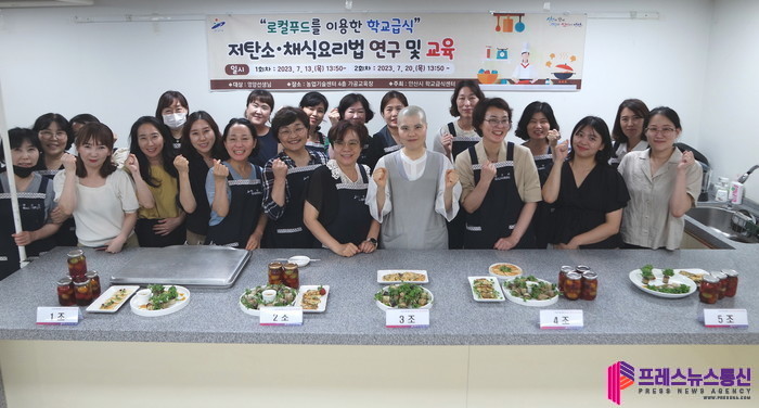 교육에는 사찰음식 전문가인 진홍 스님이 강사로 나서 가지새싹말이, 깻잎옥수수전, 두부우엉조림, 새송이버섯 양념구이, 오미자청 토마토 절임 등을 함께 만들어 시식하며, 학교급식 활용방안 등에 대한 의견을 공유했다.