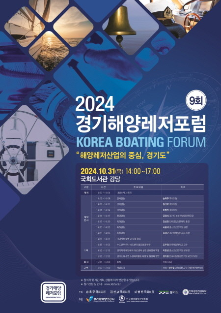 [프레스뉴스] 장현준 기자= 해양레저산업의 지속 성장을 위한 정책 방향을 해양레저 전문가들과 함께 모색해 보는 ‘2024 경기해양레저포럼’이 오는 31일 오후 2시 국회도서관 강당에서 개최된다.