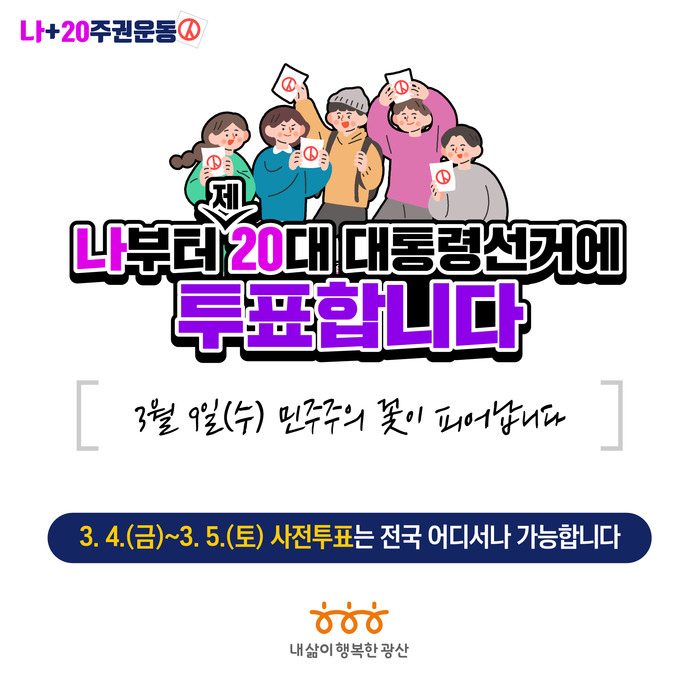 [광주=프레스뉴스] 강래성 기자= 광주 광산구가 제20대 대통령 선거(3월9일)를 맞아 많은 시민이 소중한 한 표를 꼭 행사할 수 있도록 다양한 투표율 제고 방안을 추진한다.