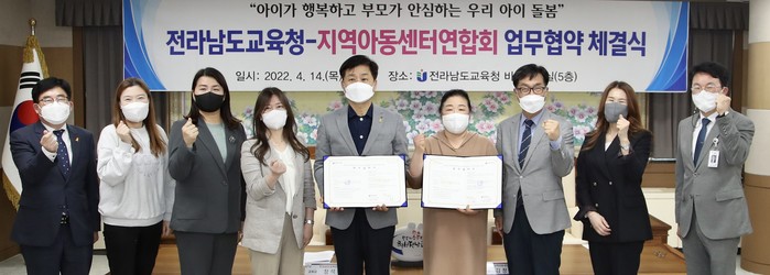 [전남=프레스뉴스] 강래성 기자= 전라남도교육청과 전라남도지역아동센터연합회가 4월 14일(목) 전라남도교육청에서 전남지역 아이 돌봄을 위한 업무협약을 체결했다.