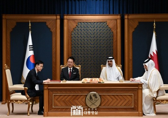 회담 후에는 MOU 서명식이 열렸다. 윤 대통령과 타밈 국왕의 임석 하에 스마트팜 협력, 건설·건축 분야 첨단기술 협력, 국가 공간정보 협력, 중소벤처 분야 협력, 무역투자촉진 프레임워크, 이렇게 총 5건의 MOU가 체결됐다.
