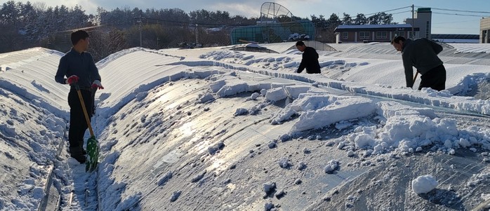▲ 함평군 농업기술센터가 폭설 및 한파로 인한 원예작물 동해 예방을 위해 농가에 철저한 관리를 당부했다.(사진제공=함평군) |