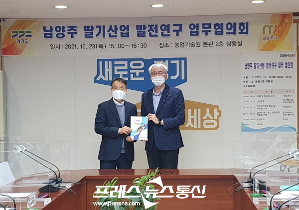 한편, 농기원은 23일 화성 농기원 본관에서 남양주시 농업기술센터 관계자와 공동연구원 등이 참석한 가운데 정책자료집 제공과 딸기산업 사업화 후속 협의를 위한 ‘남양주 딸기산업 발전연구 업무협의회’도 개최했다.