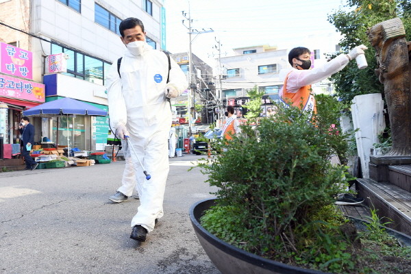 이들은 불특정 다수가 이용하는 공원 벤치 및 공중화장실 등 공공시설물에 대해서는 코로나19 감염 예방을 위한 소독도 함께 실시했다.
