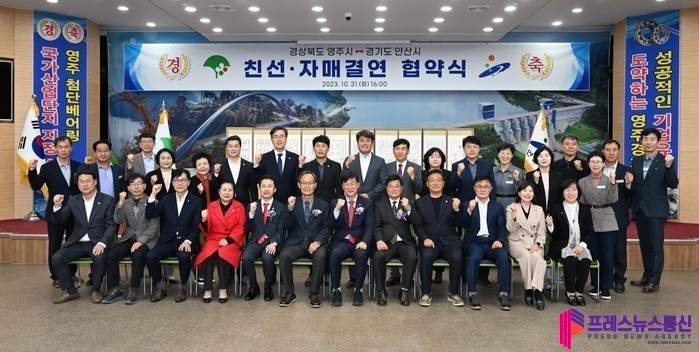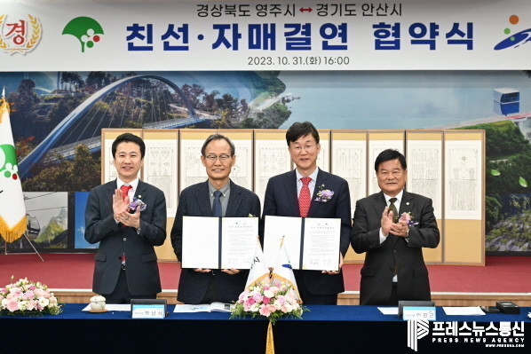 [프레스뉴스] 장현준 기자= 안산시(시장 이민근)는 지난달 31일 경북 영주시와 친선결연 협약을 맺고 지방화시대 협력자로 두 도시의 공동번영과 상생발전을 위해 적극 협력하기로 했다고 1일 밝혔다.