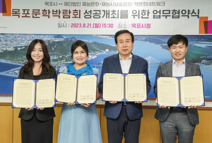 [전남=프레스뉴스] 이광남 기자= 전남 목포시가 지난 21일 (재)재능문화, 재능시낭송협회, 책문화네트워크와 ‘목포문학박람회’ 성공 개최를 위한 업무협약을 체결했다.